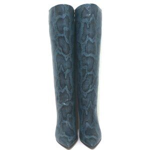 Paris Texas Knee-High Boots Teal Snakeskin-Embossed Leather Size 37