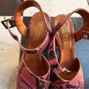 Paris Texas Fuchsia Pink Snake Print Leather Platform Block Heel Cross Sandal