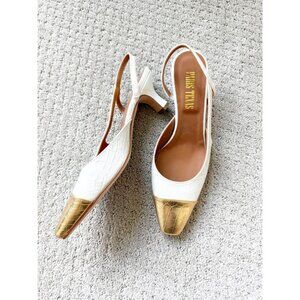 Paris Texas Reptile print slingbacks in white and gold 37.5/7.5