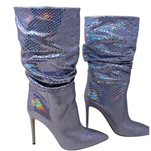 Paris Texas Slouch Boots | Iridescent Holographic Snakeskin | Size EU 40 US 10