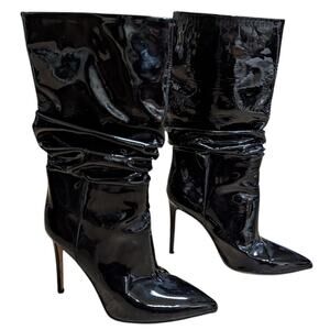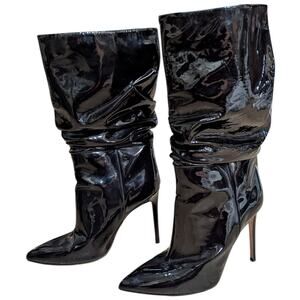 Paris Texas Slouchy Stiletto Boots Black Patent Leather Size 38