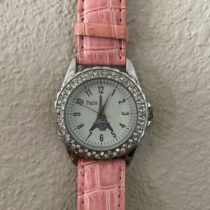 Paris watch made from stainless steel with CZ diamonds, and genuine leather wraps. Excellent condition