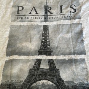 Paris, France sleeveless top. Gently used. Rushing on lower sides. CapSleeves. Length of top is 23”; bust is 16” across.