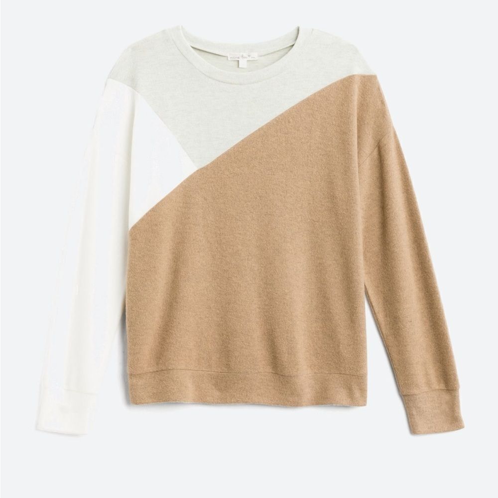 Add a touch of elegance to your everyday wardrobe with this Nine Britton Paris Diagonal Colorblock Knit Top. Size XS. This long sleeve top features a diagonal colorblock design and a scoop neck for a fashionable look that pairs well with jeans and flats. Material is 68% polyester, 28% rayon, and 4% spandex. Excellent condition.
