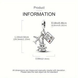 A Paris inspired travel-themed sterling silver charm, invoking wanderlust and cherished memories. Ideal for those who treasure travel and adventure.