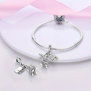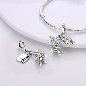 • Airplane, Eiffel Tower, and Paris-themed charm