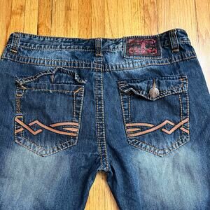 Parish Jeans Mens 42 Flap Pocket Baggy Thick Stitch Skate Blue Distressed