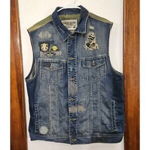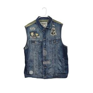 Parish Nation Bomb Squad Young Guns Blue Denim Distressed Vest Men’s 2XL Cotton