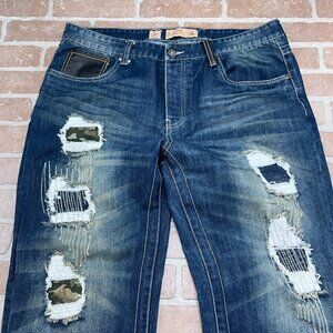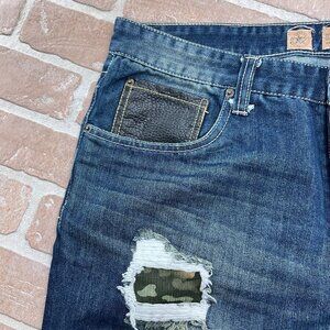Parish Nation Jeans Men 36 Blue Camo Patch 2006 Stonewash Distressed Bootcut