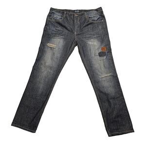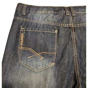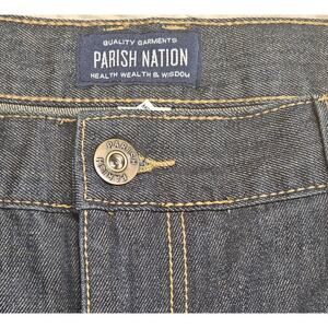 Parish Nation Jeans Mens Sz 40x34 Distressed Dark Blue Tribal Aztec Pocket