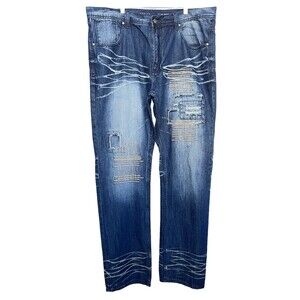 Parish Nation Men’s Patched Embroidered Distressed Jeans Size 40x35