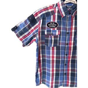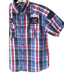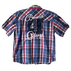 Parish Nation Mens Size XL Plaid Patches Distressed Shirt Casual Bound Glory