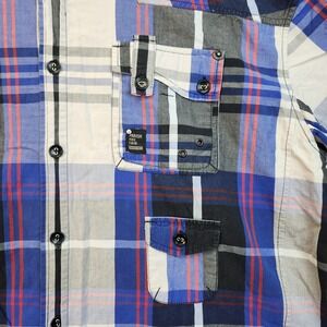 Parish Nation Shirt Mens 3XL Blue Black Plaid Short Sleeve Button Up Casual