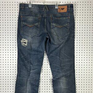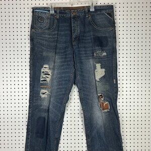 Parish Nation Y2K Blue Jeans 42x34 Distressed Worn Upcycled Skater Grunge Dark