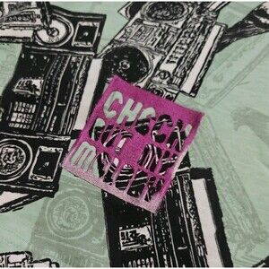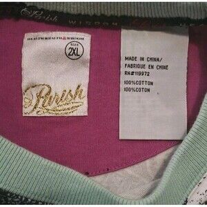 Men's 2 XLarge Parish mint green t shirt with black pigeons and boomboxes graphic print. Pink " check out my melody " embroidery and gold logo accents. Metal brand tags as shown in closeup photos. Good preowned condition, some slight wear noticeable around the collar.