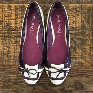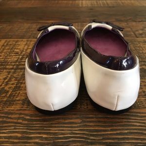 Genuine patent leather flats in deep plum & white, never worn. Made by local Paris designer "wil star". Euro 38