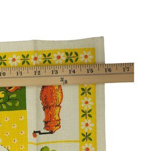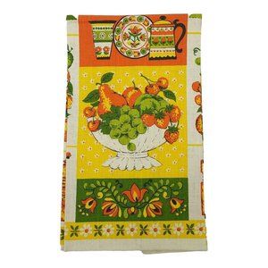 Parisian Prints Tea Towel Fruit Bowl Floral Grapes Cherries Kettle Cup Plate All Pure Linen NOS Lot of 3 Red Green Yellow Made In USA Linen Mid Century MCM