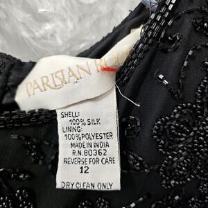 Parisian Room Dress Womens 12 Silk Black Beaded Lined Shoulder Pads LBD Vintage