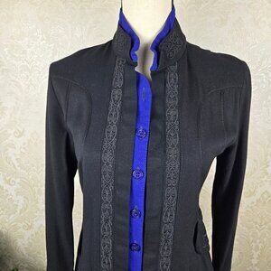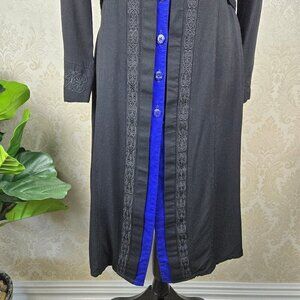 Parisian Size Med/Lg Black Cobalt Blue Coat Dress Embroidery Details Long Slv