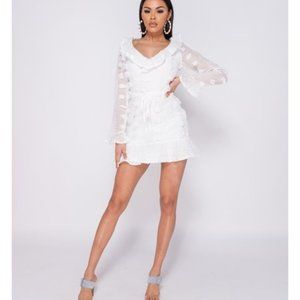 if your shopping for the perfect mini dress this season you're in luck! This dobby mini dress featuring frill detail & tie up front is perfect for night or day. Team it with strappy heels & clutch for ultimate style goals!