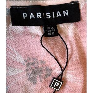 Beautiful and flirty Parisian Women’s jumpsuit size 10. Open legs with high side slits on each legs measuring 24". Tie close at the ankle. Surplice style top. Adjustable spaghetti straps. Front side pockets. Multicolor floral pattern. Very lightweight and airy. Resort vacation wear. New without tags. Size 10.