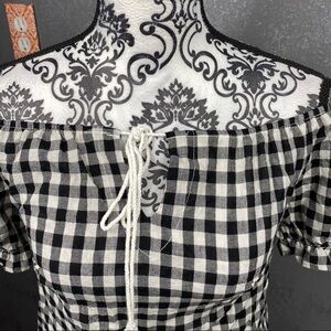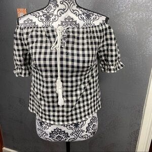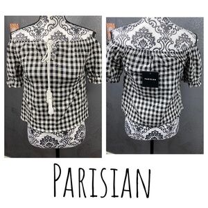 Parisian. Gear up for summer in the gingham bardot top. Pair with jeans and heels to elevate the look.