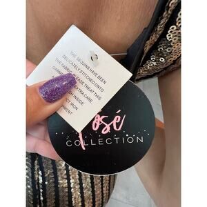 Parisian Black Gold Sequin Chain Detail Sleeveless Bodycon Dress Size US 6