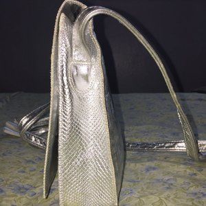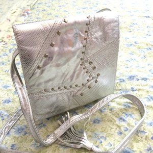 Park Ave Int. Silver vintage crossbody bag with tassel and stud embellishment; magnetic closure; genuine leather material; slip pocket (under from flap); internal slip pocket.