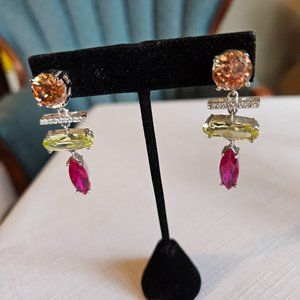 Park Lane "Center Stage" NWOT Earrings Bracelet Necklace Bundle. Earrings 1 1/2". Bracelet 7". Necklace 16" to 19". Colored rhinestones. Gold-plated! The base of jewelry composed of brass or copper, but it is coated with a thin layer of gold through a process known as gold-plating. $1,000 retail.