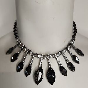 Park Lane Crystal Black and Silver Statement Necklace Adjustable 18-28"