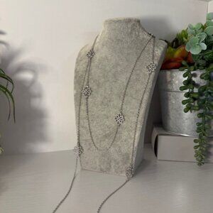 Bring classic charm to your wardrobe with the Jennifer Necklace—a lightweight silver-tone chain featuring sparkling crystal floral stations. This retired Park Lane piece gives effortless grace whether worn alone or layered.