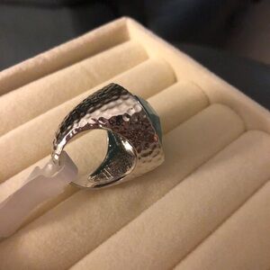 The Park Lane "Oceana" ring is a statement piece featuring a faux turquoise stone set in a hammered silver-tone ring. It's part of Park Lane's "RED CARPET" series.