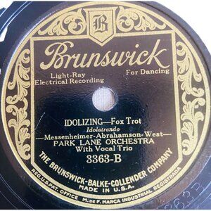 Record by Park Lane Orchestra featuring "Just A Little Longer" (Fox-Trot) and "Idolizing" on Brunswick label (3363). Light-Ray Electrical Recording. 10" 78 RPM.