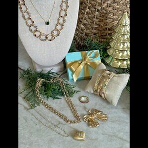 Elevate any outfit with this stunning, chunky gold bow statement necklace. This eye-catching piece is designed to make a memorable impression, blending classic elegance with modern flair. It’s the perfect accessory for both special occasions and everyday glamour.