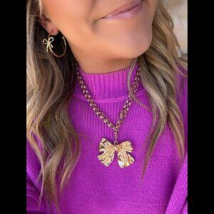Design: Features a large, dimensional bow pendant crafted in a high-quality, luxurious gold-tone finish.
