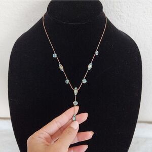 sparkling blue rhinestones and copper prongs.missing 2 stones on necklace.(Please see pictures) Necklace and bracelet matching set.