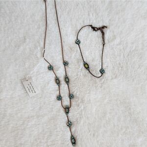 Park Lane Blue & Green Rhinestone Flower Dainty Necklace and Bracelet Set