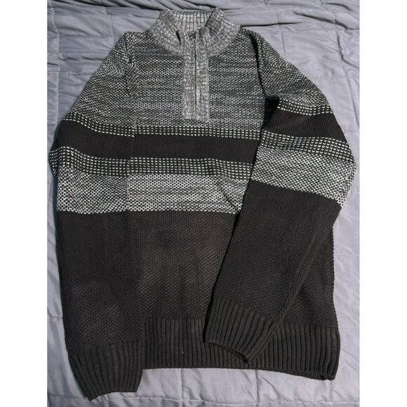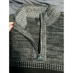Park Slope Men’s L 1/4 Zip Sweater Heavy Knit Pullover Black Gray Preppy Style