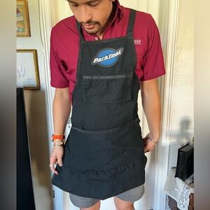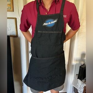 Durable Park Tool shop apron in black, designed for comfort and utility during bike repairs, woodworking, or any messy project.