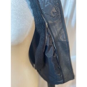 Park V Women's Large (18) Leather Biker Jacket Fringed Black Harley