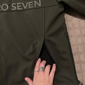 Parka with 2 pockets, a zipped opening towards the neck, a hood and an opening on the side for better threading. Breathable interior.