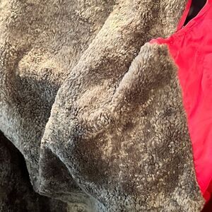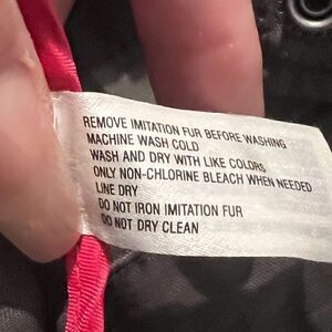 Tailored and finish seams. Full zip through the throat up to the neck and chin. Snaps are brass gunmetal. Zipper around conforms through the neck to the jaw with rope to cinch hood around face. Waste has cinching options with pull rope. Total of four working pockets. Fully lined with decorative afuschia trim out, lining primarily consist of Sherpa like lining. Lining bottoms into coat. On the reverse back vent with two snap closures. Great touches, well made one of a kind.
