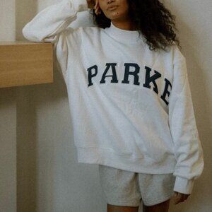 Parke Logo Mockneck Sweatshirt NEW Varsity White Dark Grey Pullover Large XL