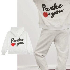Cozy up in our favorite fleece hoodie, now with the exclusive Parke Loves You Valentine’s Day graphic. Featuring an embroidered heart on the sleeve. Front is plain.
