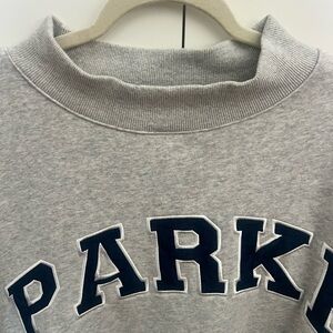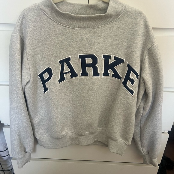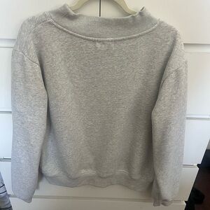 Classic Grey + Navy Mockneck sweatshirt. Inside is fleece.