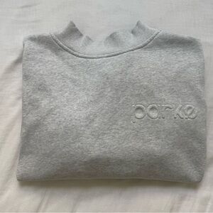 Heather Grey, simple PARKE mock neck with raised logo in discrete on the upper right corner of breast
