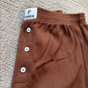 Parke brown ribbed pants with buttons, matching mockneck also listed