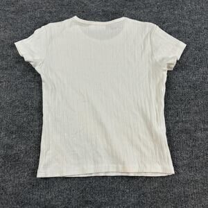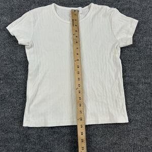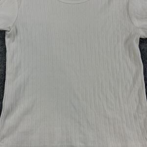 Parke Top Womens Medium Baby Tee White Ribbed Pointelle Knit Minimalist Comfy