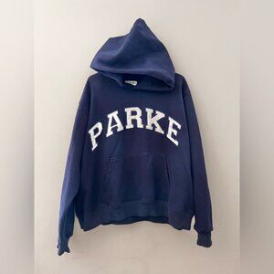 Parke Varsity Hoodie Navy Blue Sweatshirt Fleece Pullover Size L/XL