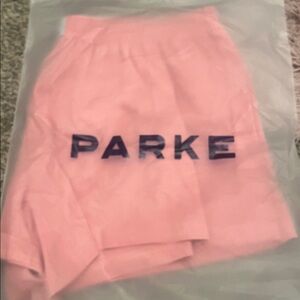 Stylish mini skirt by Parke in a lovely pink shade. Ideal for casual outings. Conch size is Large
